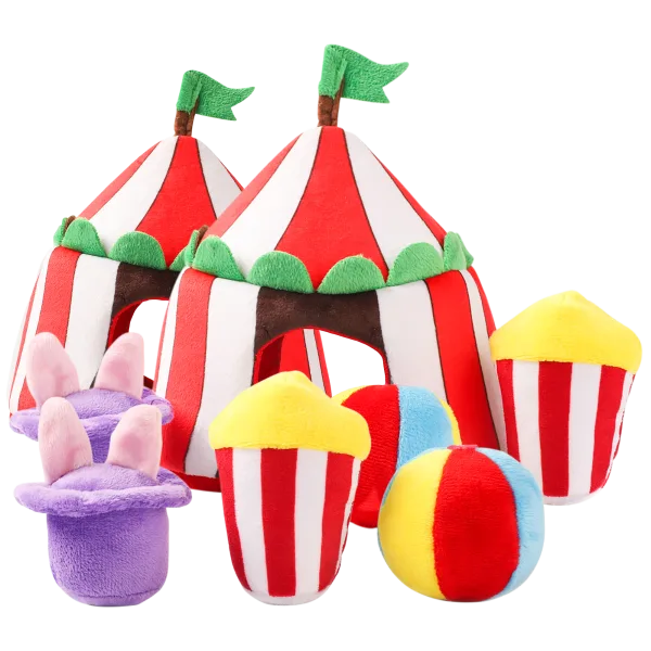 2-Pack: HugSmart 3-In-1 Squeaky Hide & Seek Plush Dog Toys (Happy Circus)