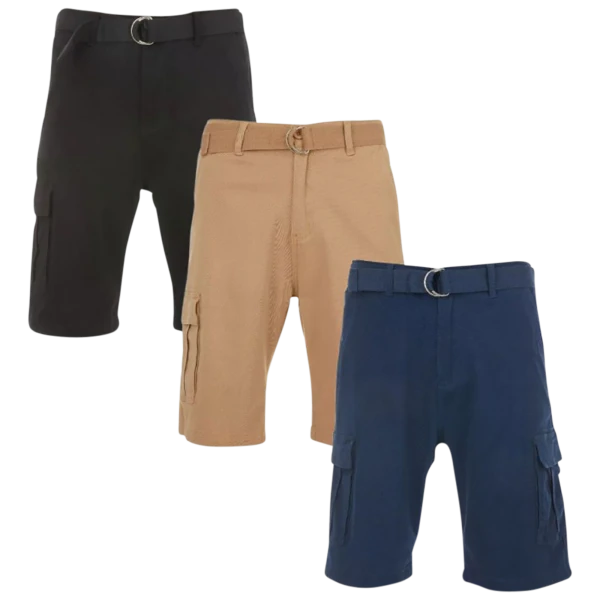 3-Pack: Nextex Apparel Men's Cotton Stretch Twill Belted Cargo Shorts