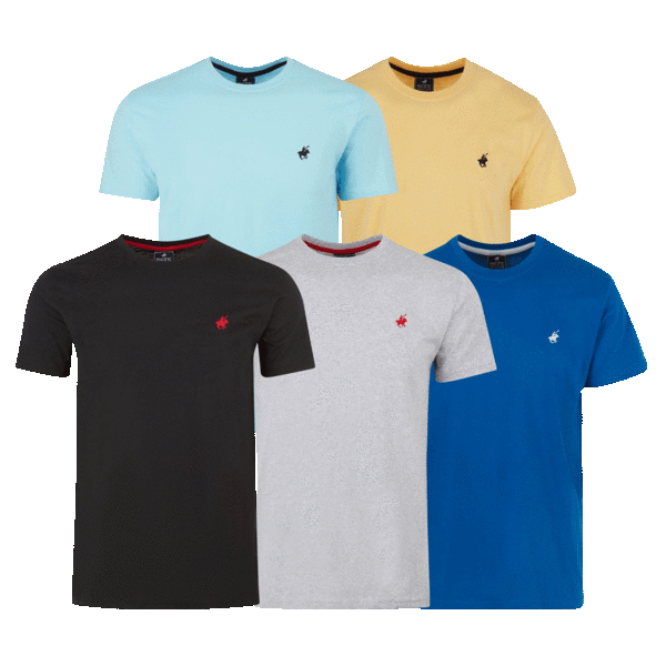5-Pack: Pacific Polo Club Men's Short Sleeve Crew Neck T-Shirts