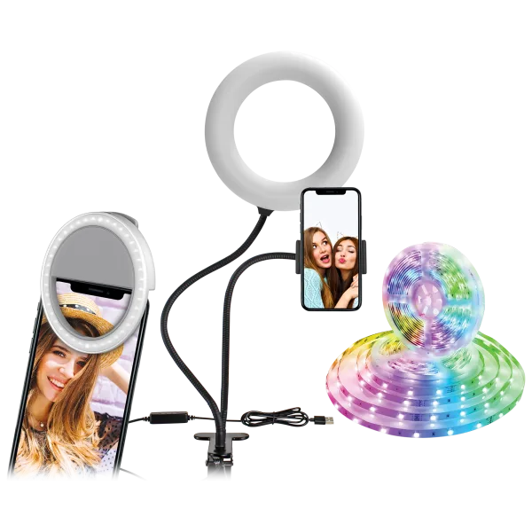 Aduro U-Stream Selfie Studio Gift Set with 6” Ring Light & 6 Ft LED Light Strip