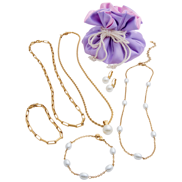 Savvy Cie 7-Piece Genuine Pearl Jewelry Set with Travel Bag